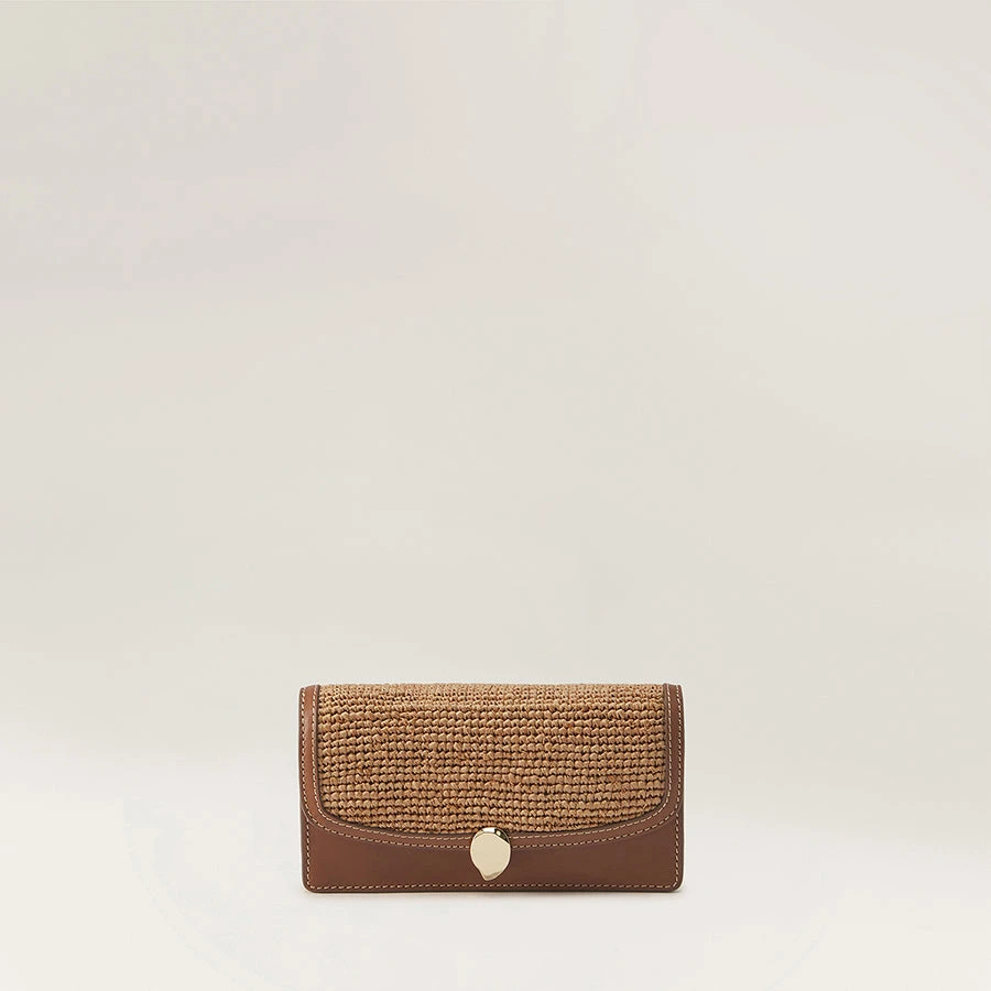 The Adelie Wallet Clutch is an elegant and effortless design crafted to compliment your style. Thoughtfully designed, the strap can be tucked inside to create an interchangeable style, from a shoulder bag to a clutch. Crafted in the perfect mix of luxurious leather and classic raffia crochet, the clutch and is finished with refined gold hardware, detailed with a signature seed insignia closure.