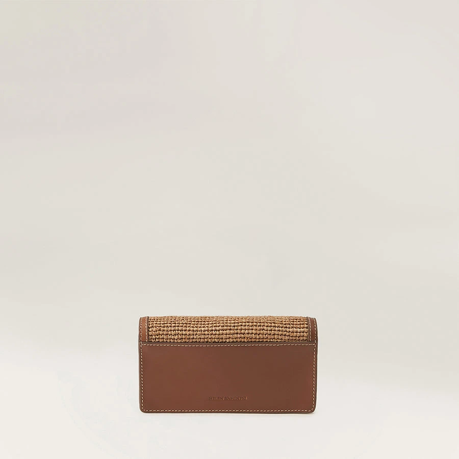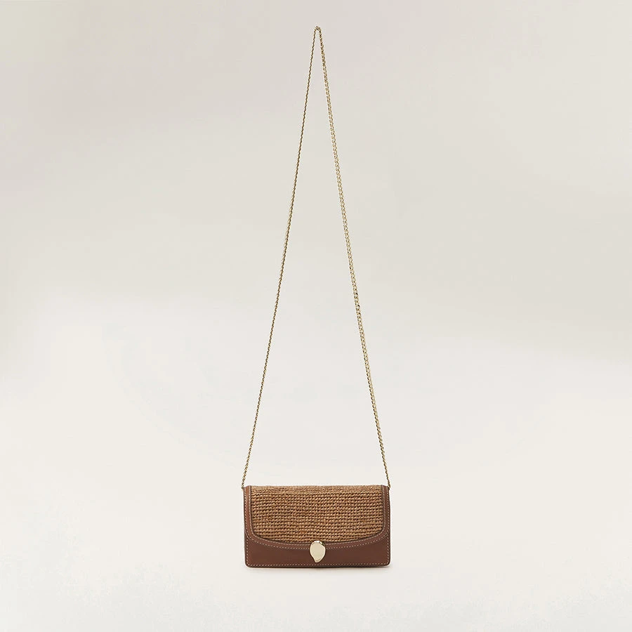 - Raffia and Leather Chain Clutch Wallet