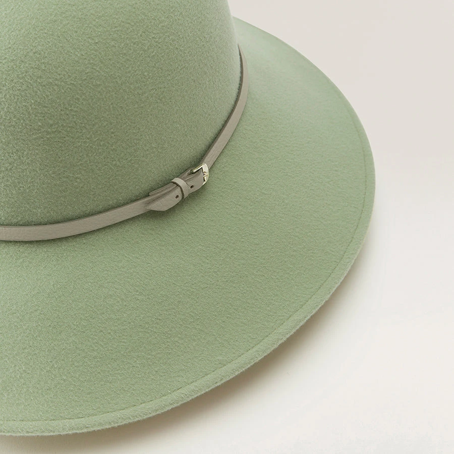 Travel with ease with Alto 9. Uniquely constructed from a durable wool felt, this wide brim round crown can effortlessly be rolled and secured using the functional leather trim. Pair with matching cosy knits or longline coats for your next Winter getaway.