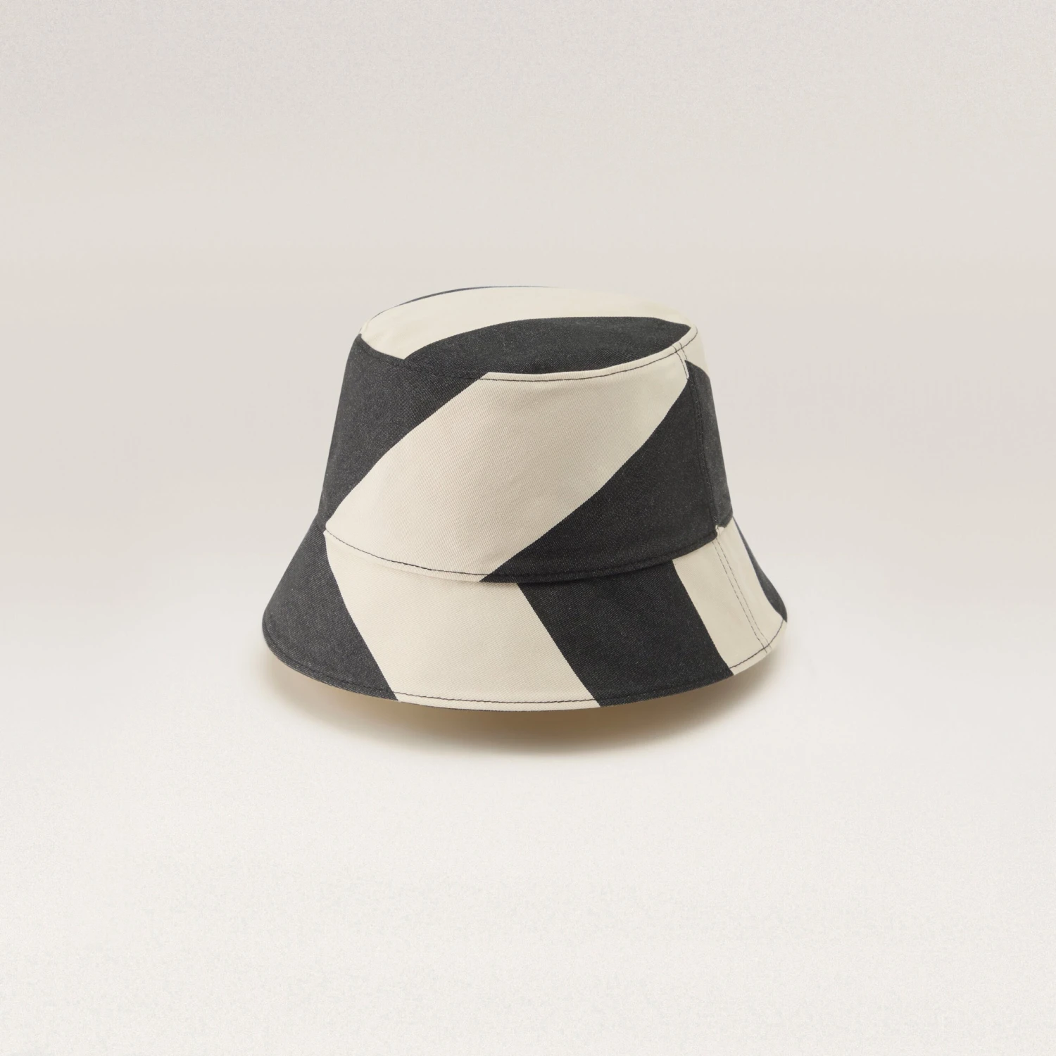 The Arlo bucket hat redefines modern classics with its unique blend of a timeless silhouette and contemporary design. Crafted from oversized yarn-dye stripe cotton twill, this hat features a stylish 6cm brim for sun protection. The size-adjustable inner band ensures a comfortable, customized fit, while the striking stripe adds a playful twist.