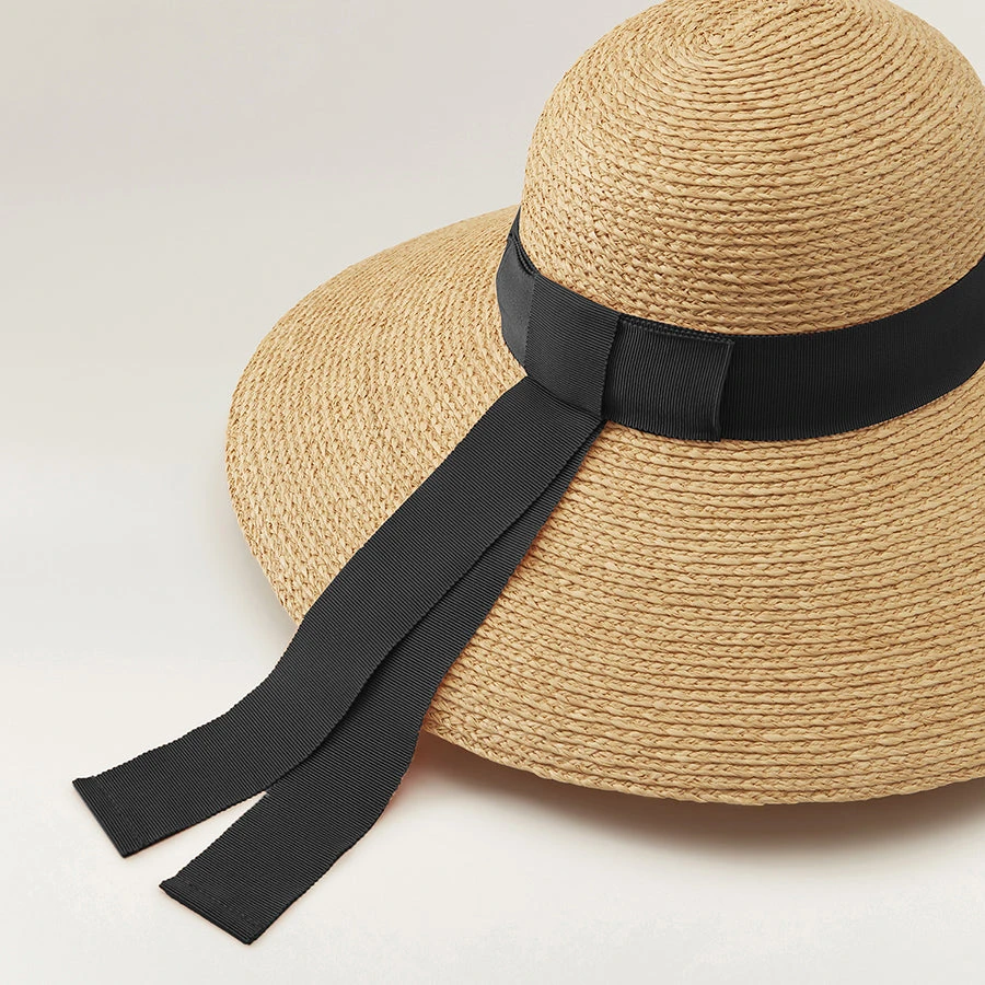 Cori is this season’s update to our sophisticated round crown sun hat. With a chic 13cm down-angled wide brim, Cori is handcrafted using sustainably sourced 100% raffia braid and finished with a luxurious overhang Grosgrain ribbon in new season hues of Orange Selenite and Lavender Fog, and paired-back tones of Black and Cream for a more classic approach.