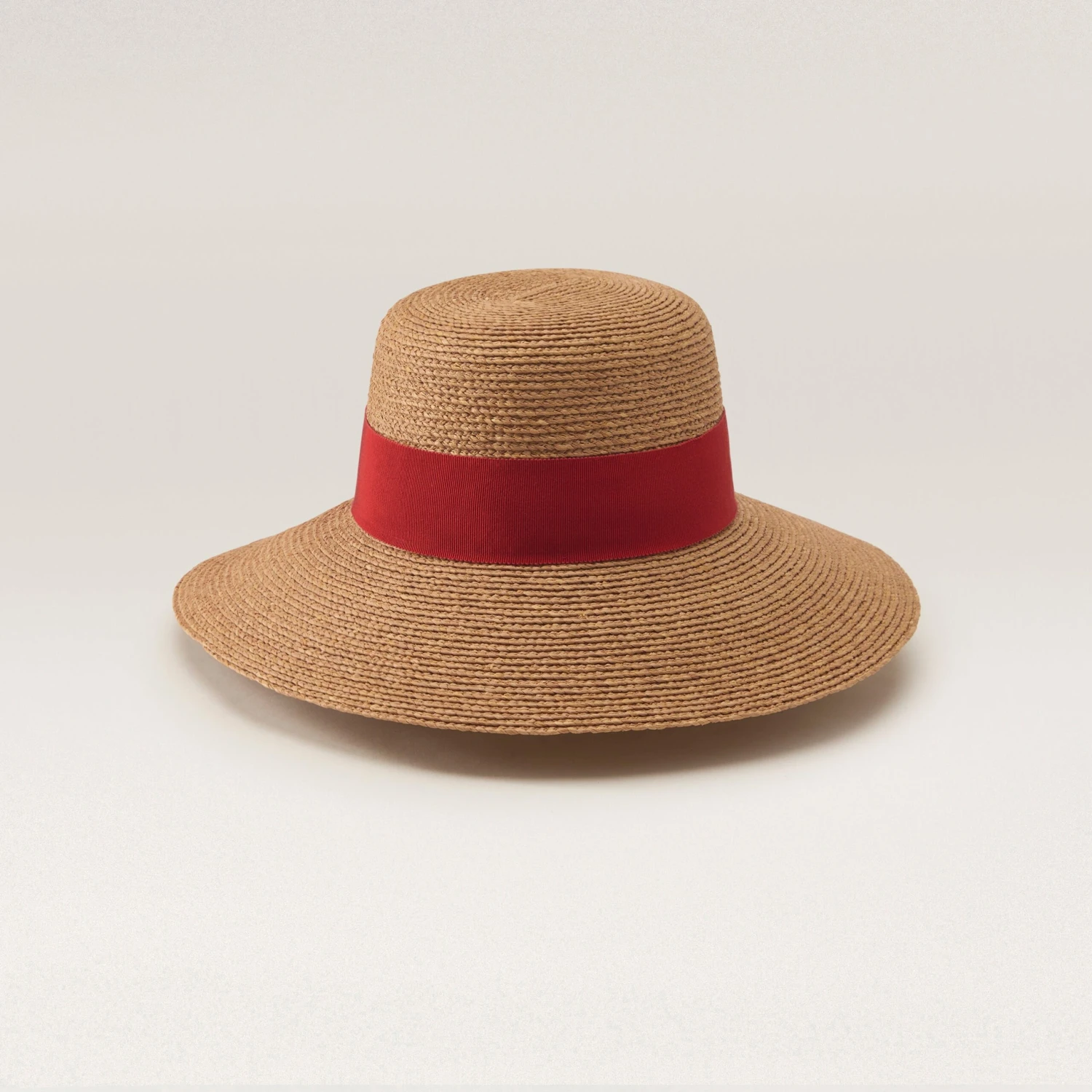 Playfully optimistic and very wearable, Easton is our new season sophisticated tapered crown silhouette. Boasting eye catching pops of colour with its classic pressed bow detailing made from FSC certified Grosgrain ribbon, Easton is the ultimate in chic summer elegance.