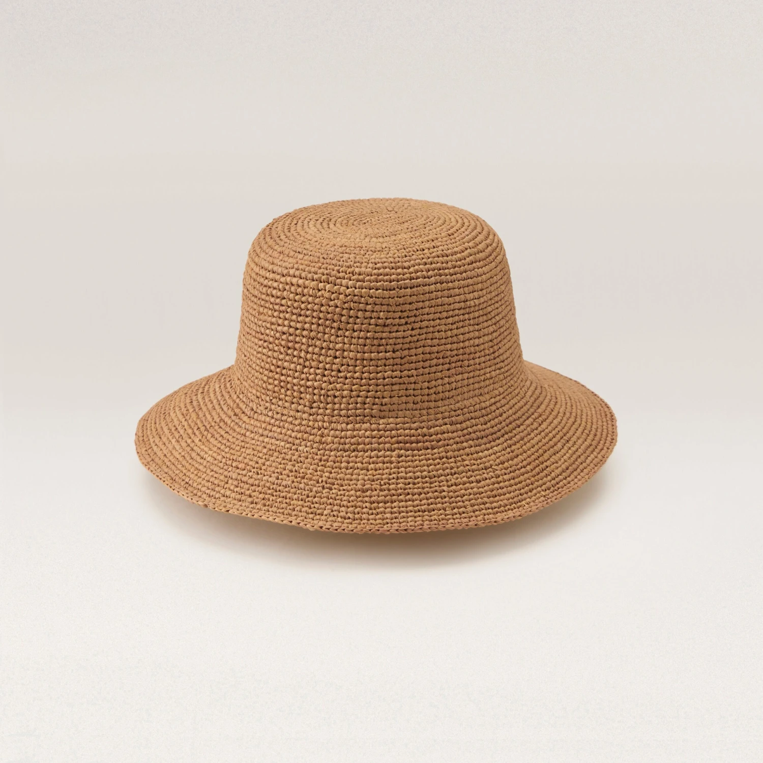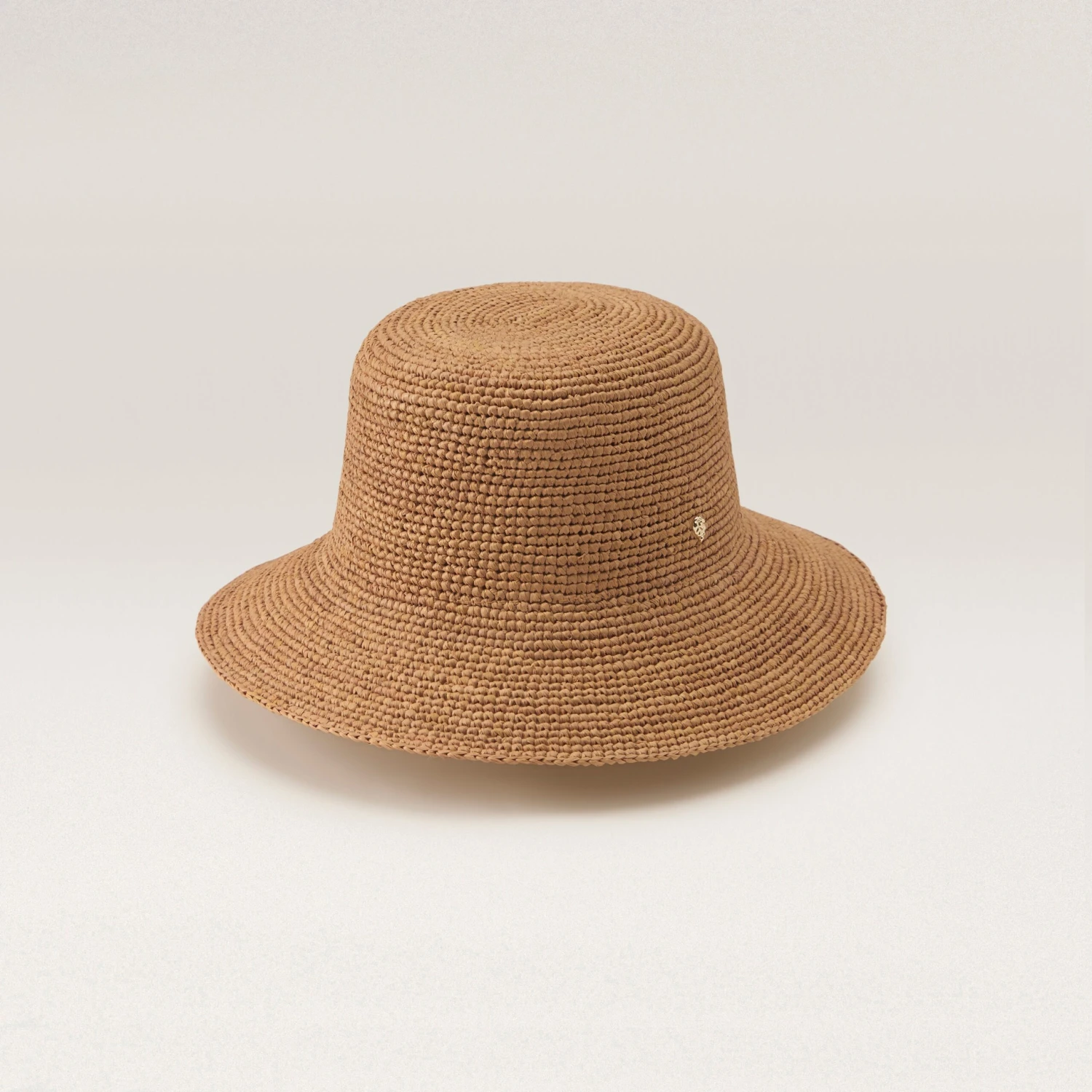 The Esther medium brim bucket hat is a beautifully crafted accessory that combines elegance with functionality. Handcrafted from raffia crochet, this hat features a distinctive 7.5cm wavy brim that adds a playful touch to its classic design.