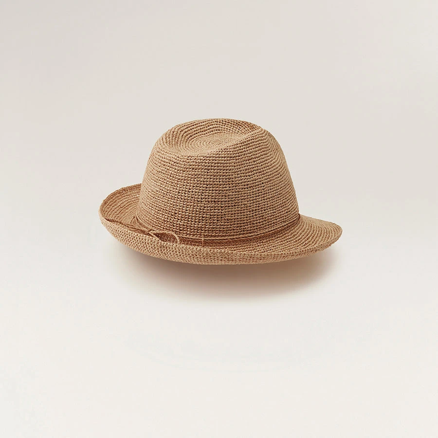 Beautifully crafted from the finest, sustainably harvested Madagascan raffia, the Fai is a classic fedora shape with a short 6 cm brim and tall crown. Fai has been crocheted by hand, making each piece a testament to the artisanal craft with subtle variations being unique to each hat. A perennial favourite, Fai rolls and packs to become the perfect summer piece.