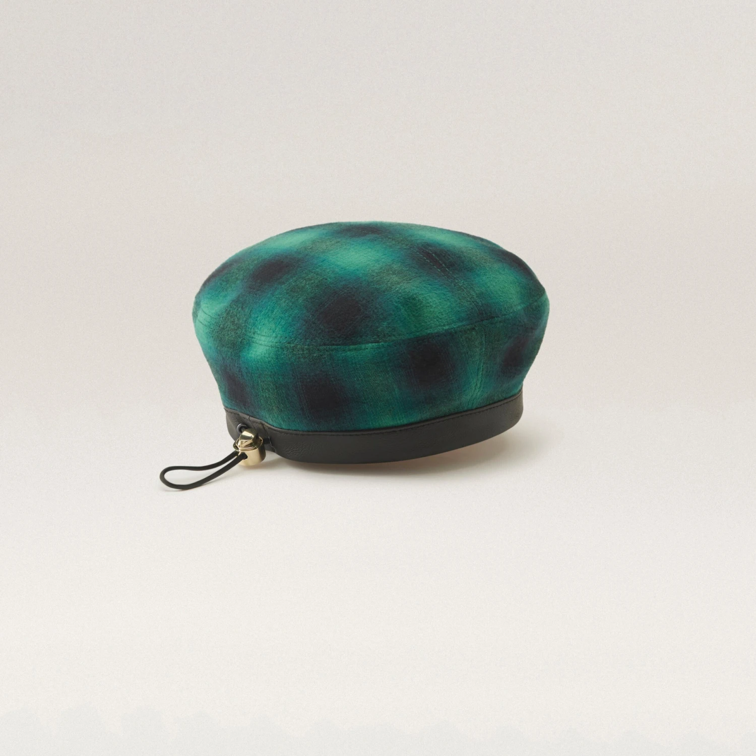 Crafted from Japanese cotton check fabric and Leather Working Group-certified leather, the Floriane beret offers chic winter styling.