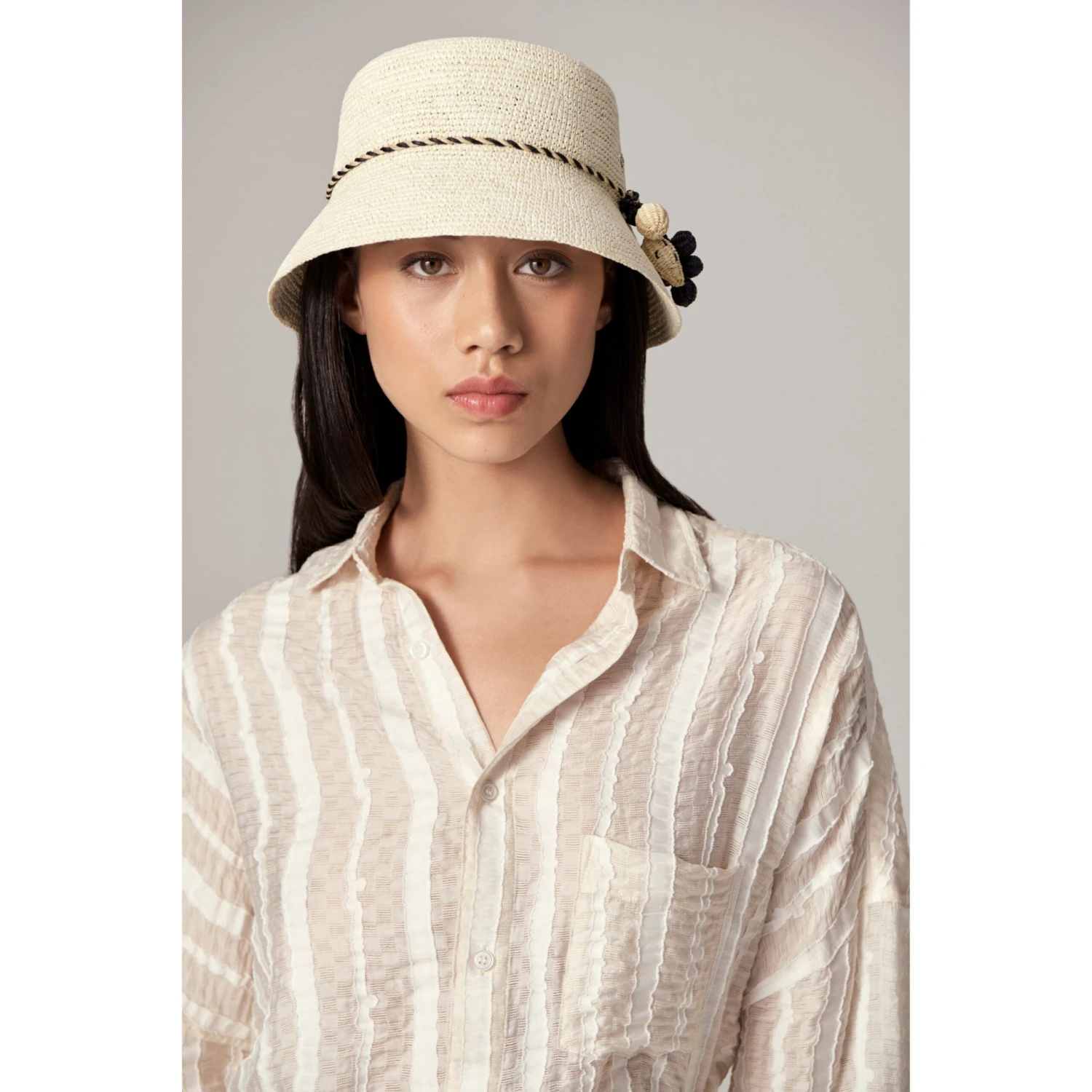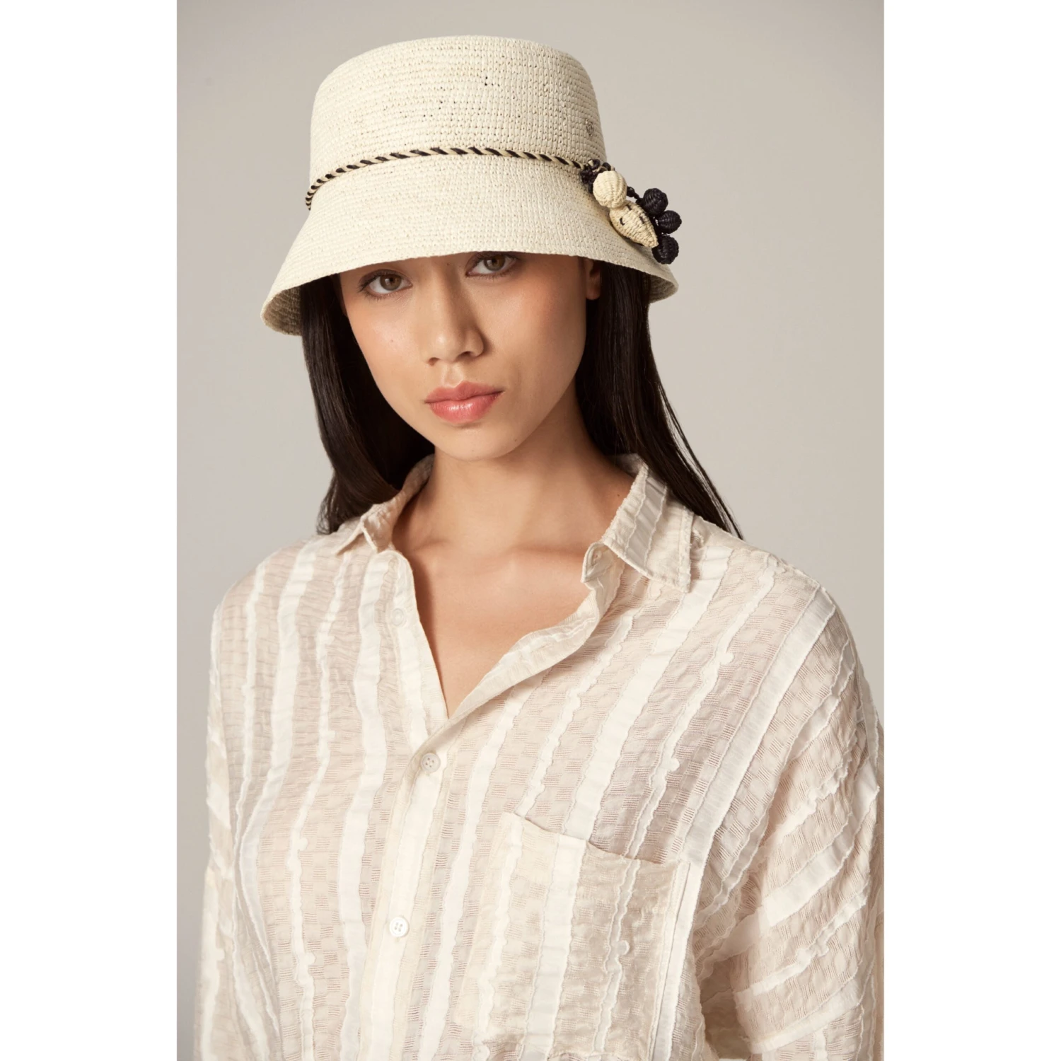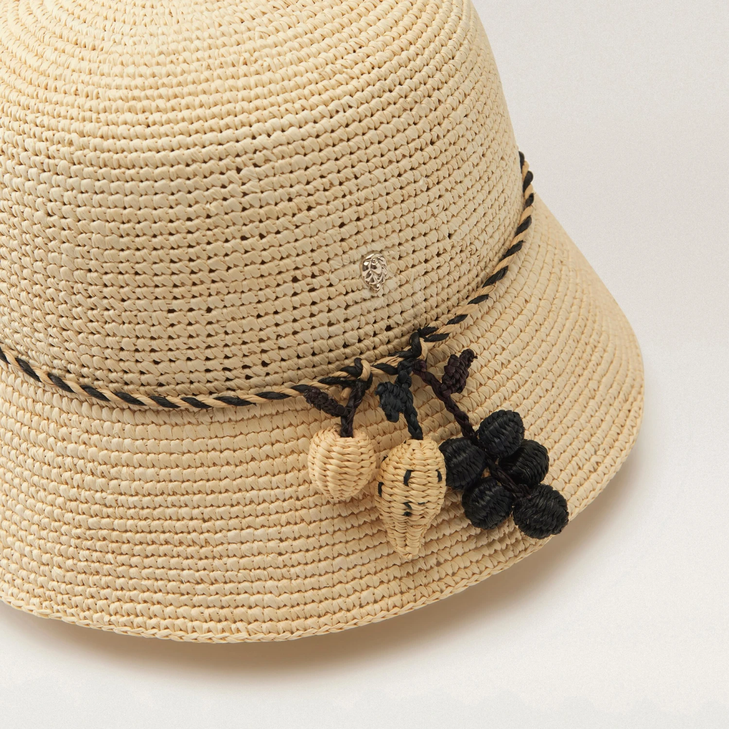 A celebration of sunny days, holiday escapism, and the serenity of lounging by the sea, the Lucille Panama bucket hat is perfect for sunny getaways. Adorned with playful fruit-shaped charms, this hat is hand crocheted in Ecuador from 100% Toquilla Palm.