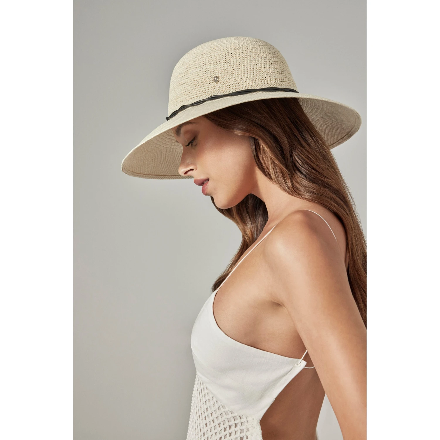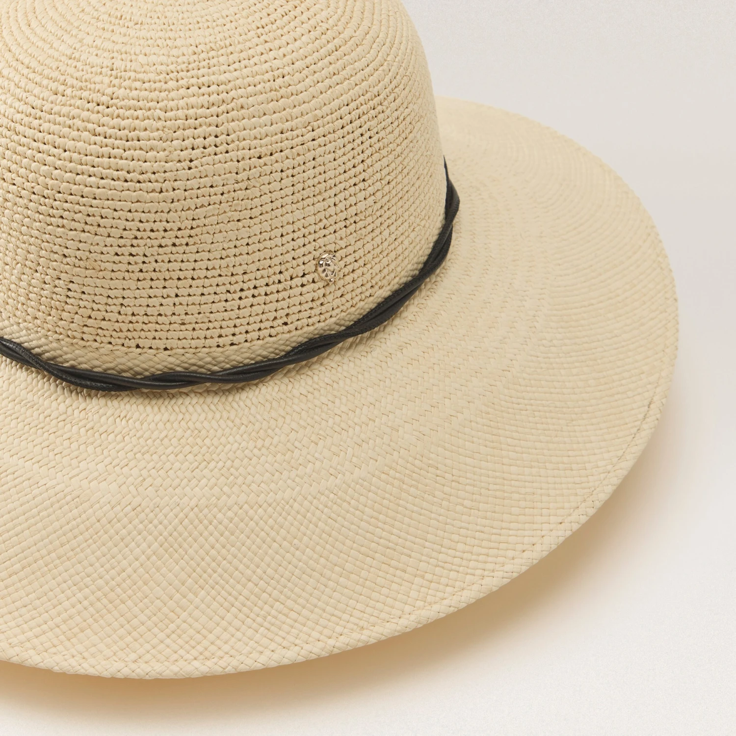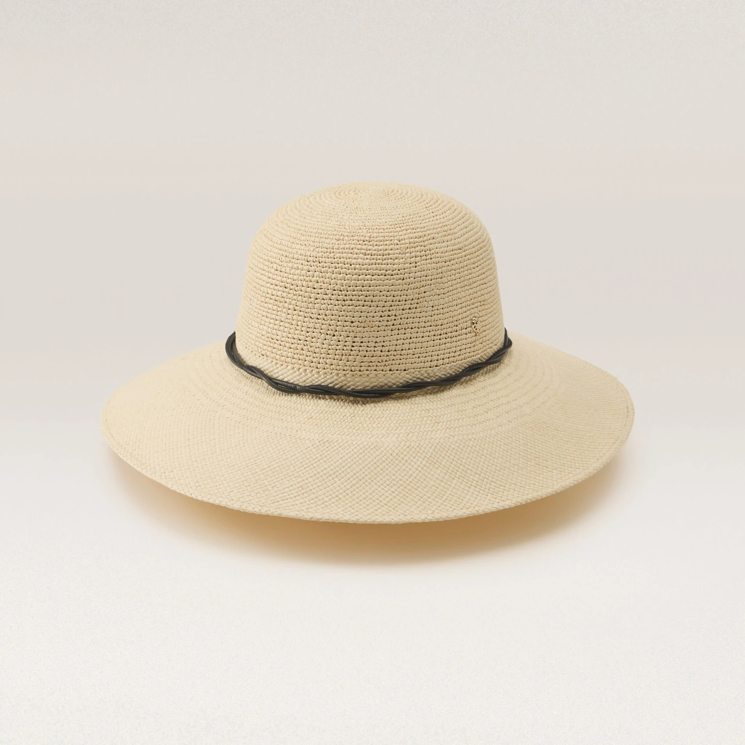 The Malina Medium Brim Hat blends a hand-crocheted crown with a woven Toquilla palm brim, expertly crafted in Ecuador. With its angled brim for added sophistication and a leather cord twist, it’s a perfect summer statement.