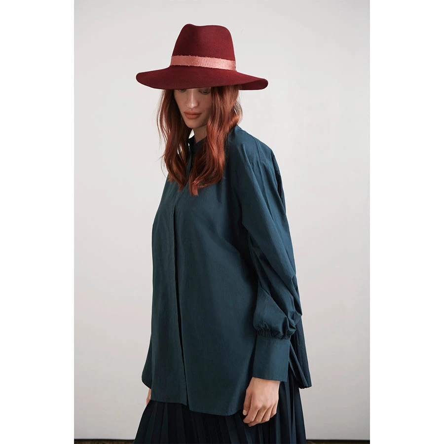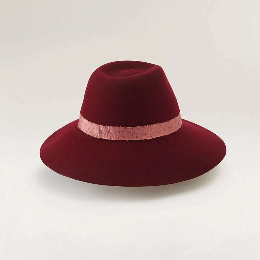 This season we introduce Oakleigh – a elegant wide-brim fedora crafted from Boutique Wool Felt and adorned with a tone-on-tone consciously sourced boucle trim. A polished way to accessorize any outfit this season.