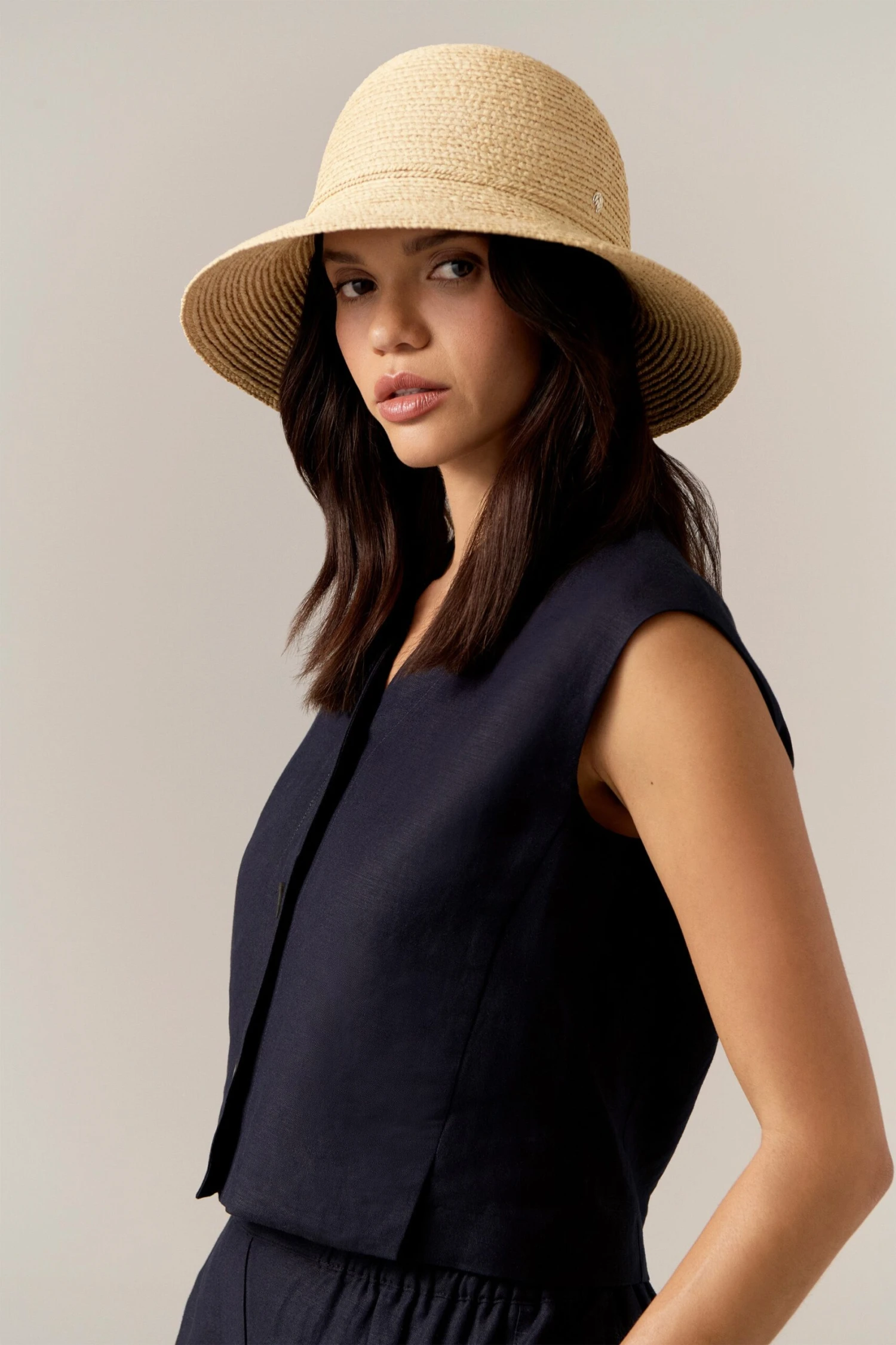 Inspired by the Iconic Provence silhouette, Prima 8 offers the same versatile style in our wide braid raffia. Finished with a hand-rolled raffia string that can be used to adjust the size of the hat, Prima 8 is available in our signature hues of Charcoal, Eclipse Melange, Natural and Nougat.