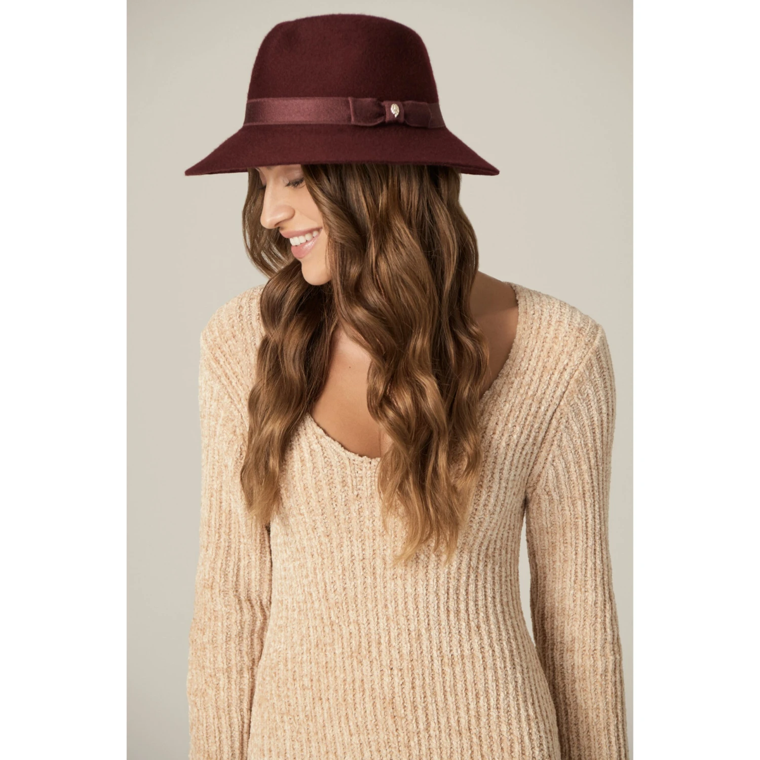 Fashioned from the finest pure cashmere satin felt, Solene embodies sophistication. Adorned with a 100% Italian wool ribbon trim featuring an elegant side bow detail, each Solene hat is a testament to exquisite taste and refinement. For unparalleled comfort, it comes equipped with a soft-touch size-adjustable inner band, ensuring a snug fit for every wearer.